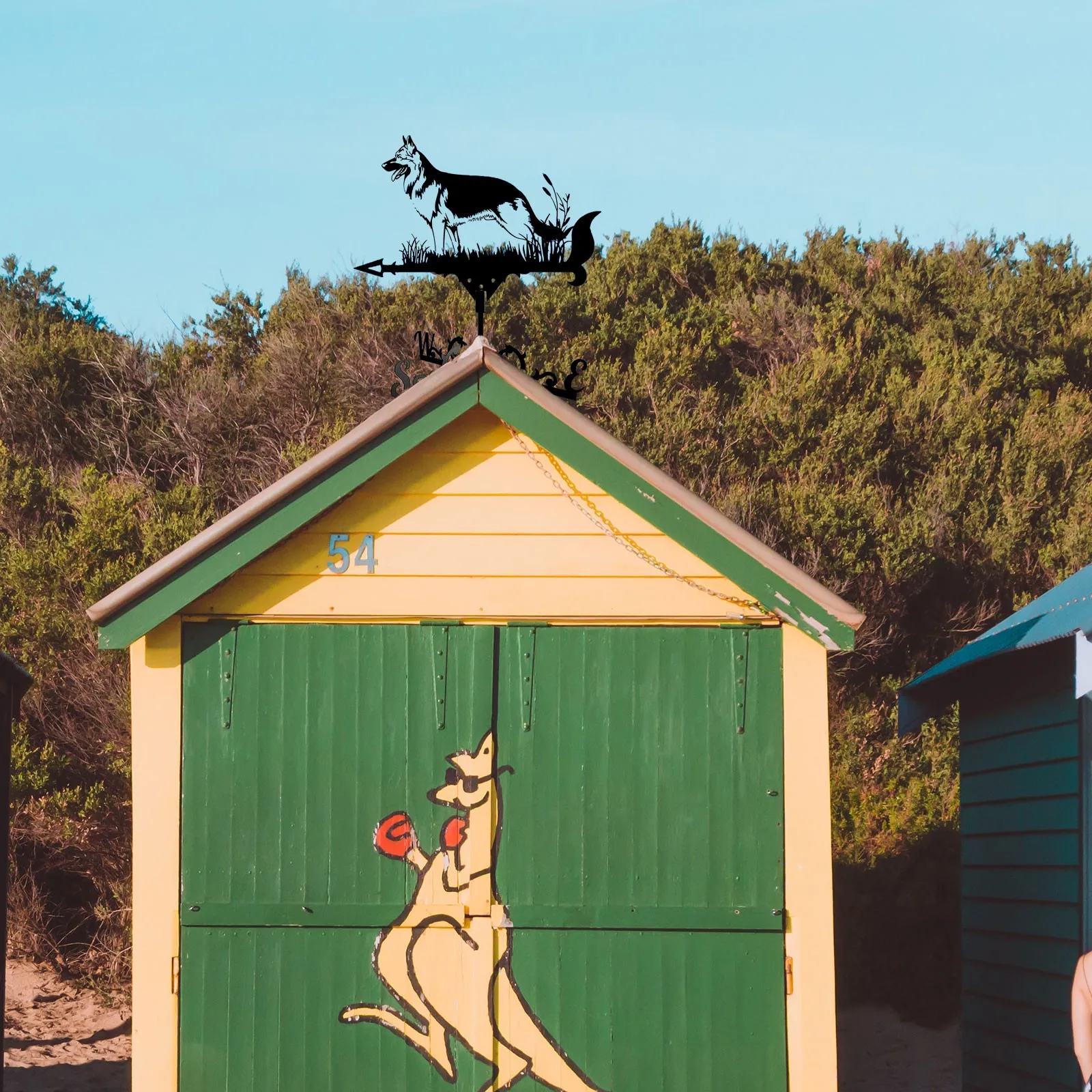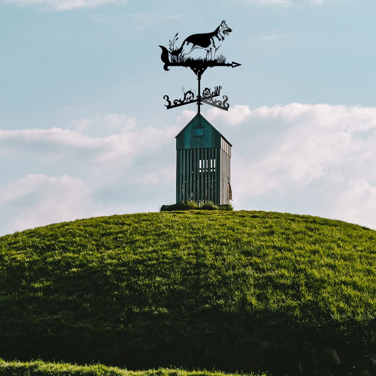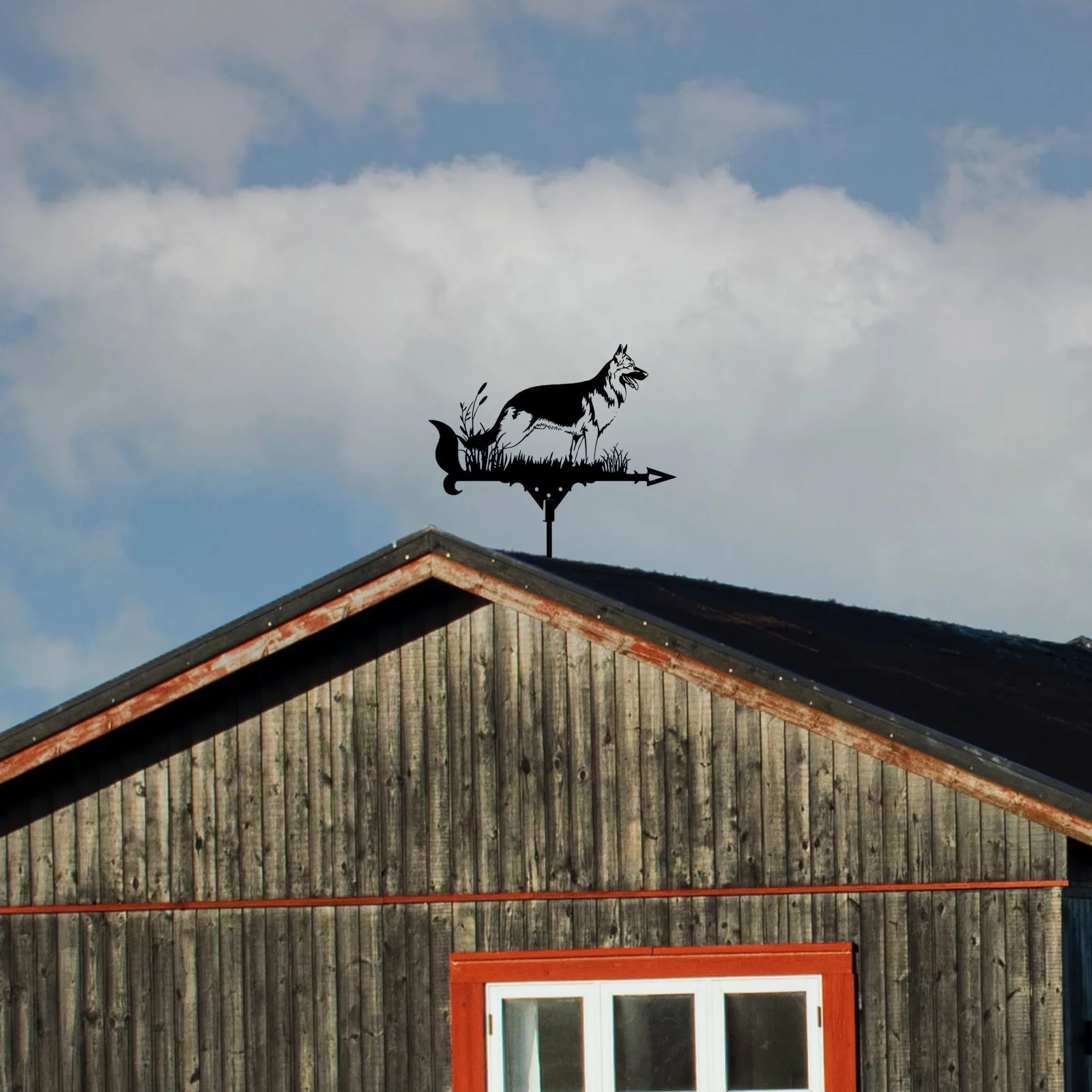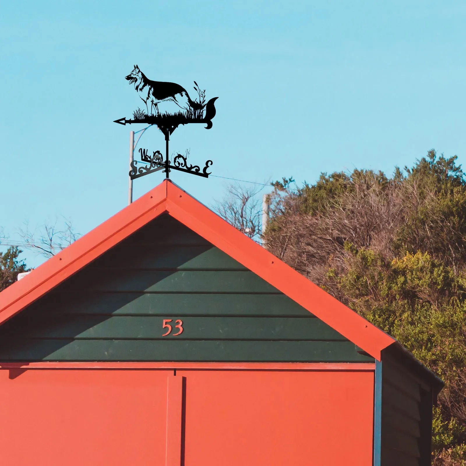 feature:【SHEPHERD DOG WEATHER VANE - Architectural style】 This beautiful weather vane has been masterfully crafted from metal and varnished to long-lasting color and dimension to your backyard. Our weathervane is not beautiful, but also useful to know which direction the wind is going. A weather vane of this size is perfect for your house, garage, , barn or pavilion.
